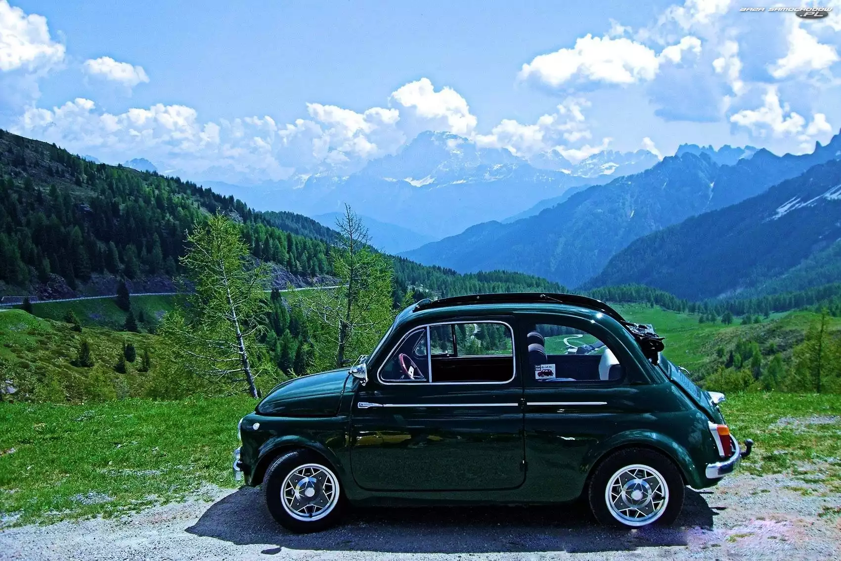Samochód: Niebo, Fiat 500, Góry