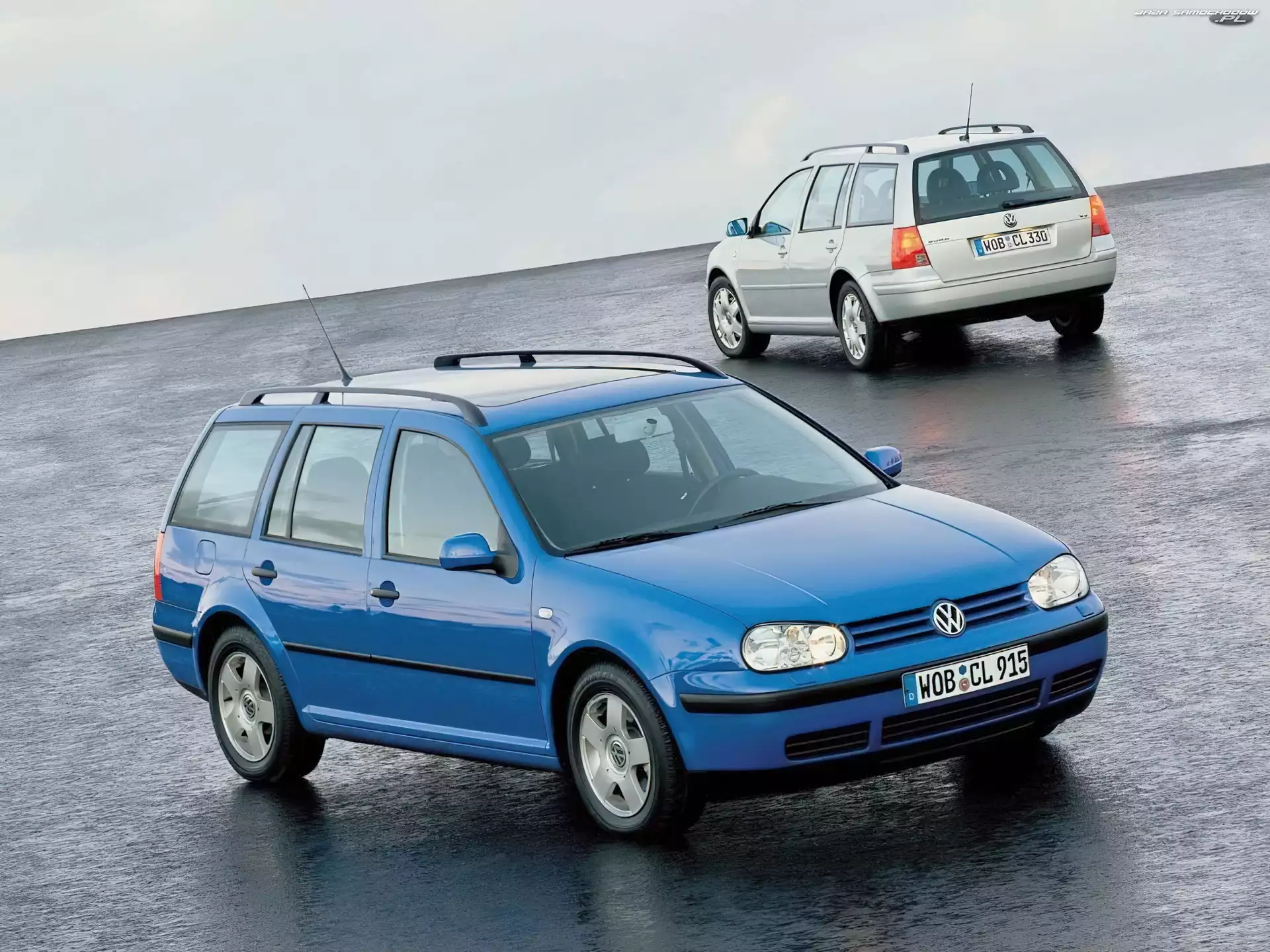 Samochód: Srebrny, Dwa Golfy 4, Niebieski